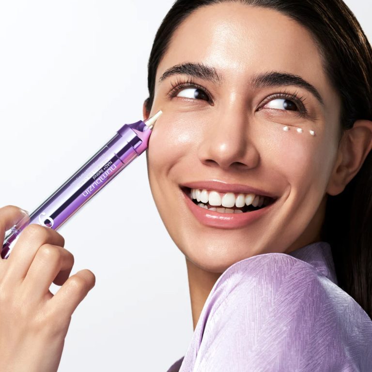 با استفاده از سری فلزی خنک‌کننده (CoolTouch)، به‌آرامی سرم را دور چشم، زیر چشم، گوشه‌های بیرونی و بالای پلک بمالید.