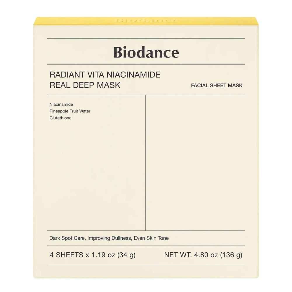 ماسک زرد ورقه ای روشن کننده و ضد لک بایودنس با نیاسینامید (Biodance Bio-Collagen Real Deep Brightening Mask – Yellow)، یک ماسک تخصصی با عملکرد روشن‌کننده و ضد لک است که با بهره‌گیری از نیاسینامید، آربوتین و ترکیبات ضد التهاب، به طور مؤثر تیرگی‌ها و لک‌های پوستی را هدف قرار می‌دهد. این ماسک با استفاده از فناوری “بیو کلاژن عمیق” نه‌تنها به روشن شدن رنگ چهره کمک می‌کند، بلکه با تأمین رطوبت و آرامش‌بخشی به پوست، جلوه‌ای شفاف، درخشان و یکنواخت ایجاد می‌کند.