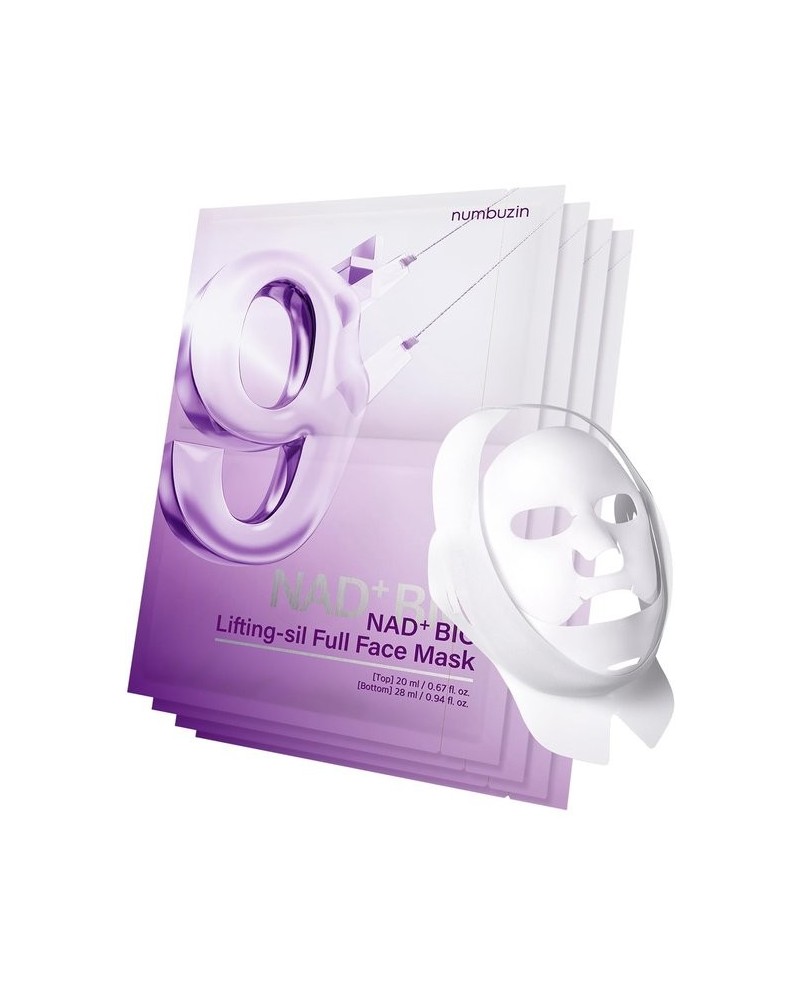 ماسک بایولیفتینگ نامبوزین شماره 9 یک ماسک ورقهای سفتکننده و لیفتینگ حرفهای با طراحی دو تکه (بالا و پایین صورت) است که بهطور هدفمند روی خط فک، گونهها، چانه و گردن کار میکند. این ماسک با بهرهگیری از کپسولهای NAD+ BIO در بخش بالایی و نخهای حلشونده PLA در بخش پایینی، به تعریف بهتر فک، افزایش استحکام پوست و ایجاد ظاهری شاداب و پُر (Plump) کمک میکند. وجود بند لیفتینگ اضافی اثر لیفت را تقویت کرده و صورت را خوشفرمتر میسازد.
